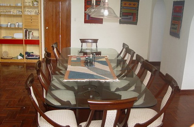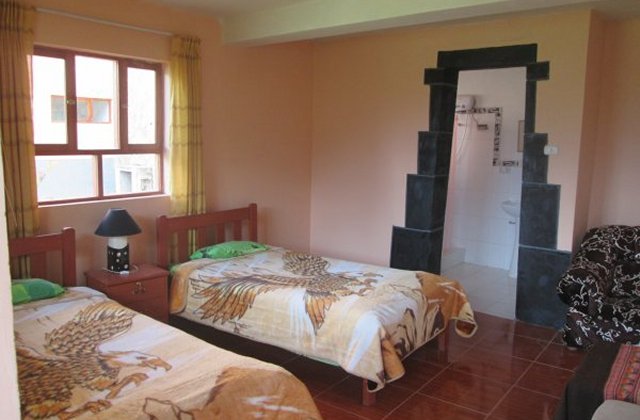 Tiene 8 habitaciones y se pueden acomodar grupos de amigos o familias, con capacidad para 25 personas. Todas los habitaciones tienen baños privados con agua caliente y conexión a Internet. El lugar central de la casa es el comedor donde son atendidos nuestros huéspedes con los alimentos y para celebrar la bienvenida y reuniones. La sala de espera junto al balcón es acogedora y tranquilia para poder escribir, leer o conectarse a Internet, apreciando a la vez el Nevado del Padreyoc.